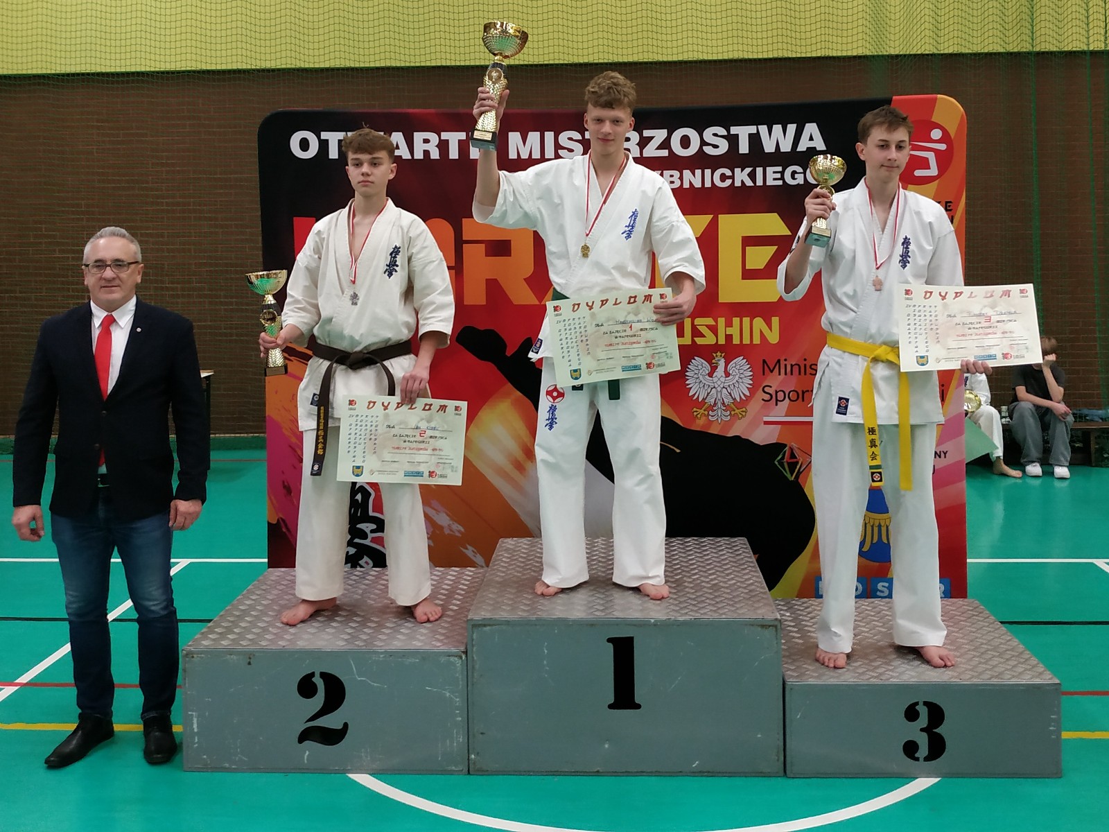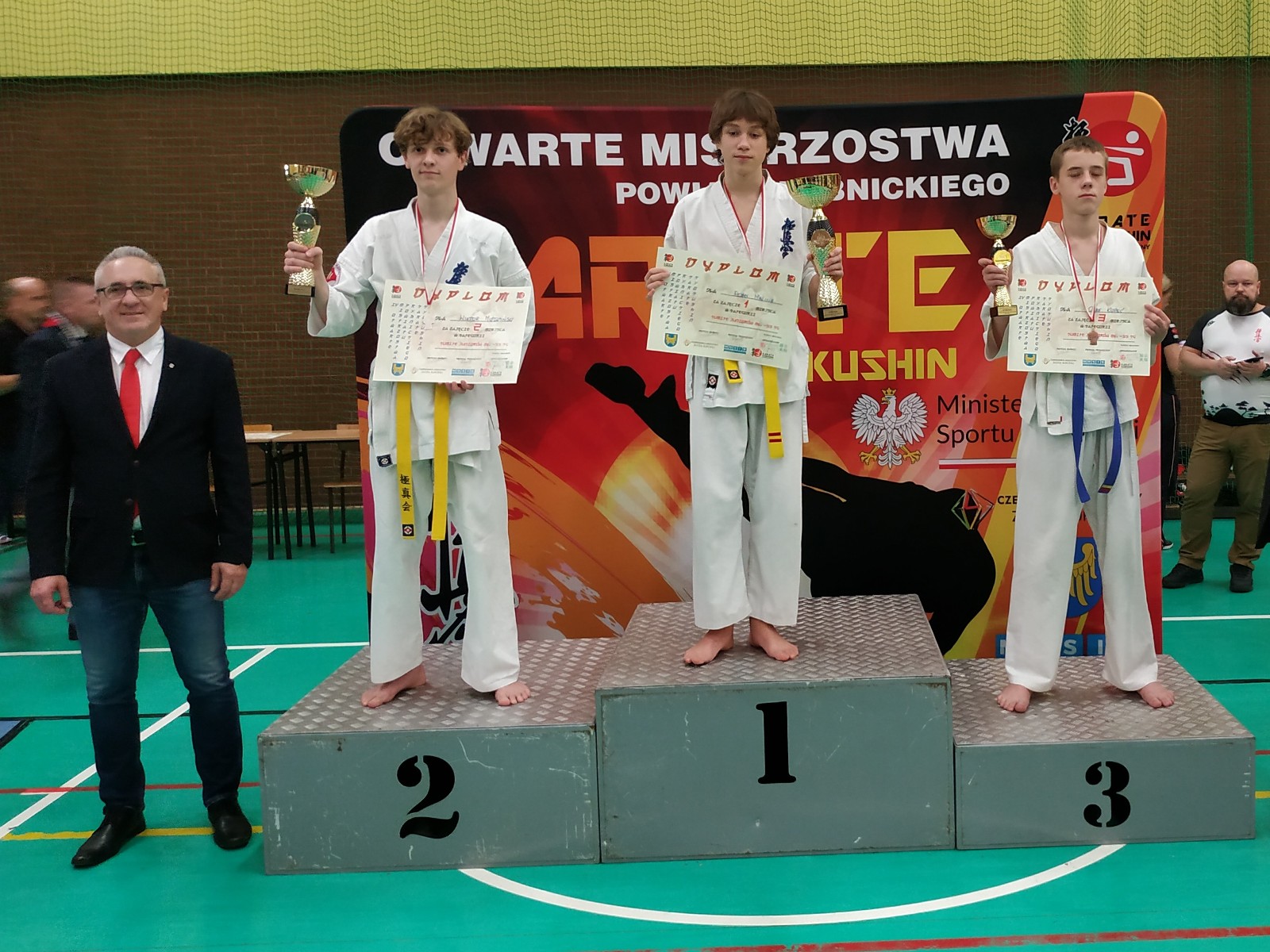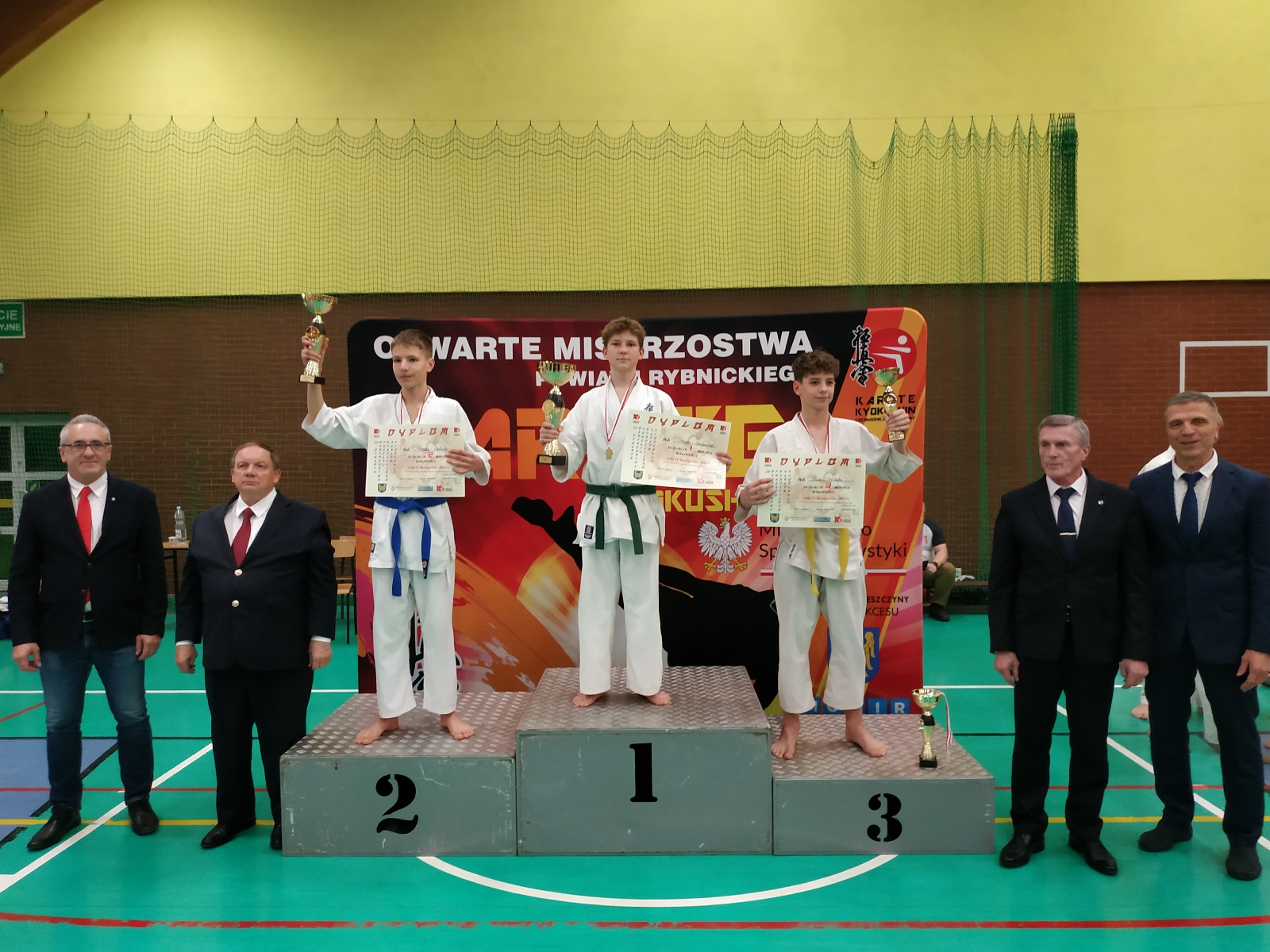Adam Szydłowski – w kategorii kumite młodzików do 55kg. W walce ćwierćfinałowej Adam odnotował błyskawiczne zwycięstwo przez czasem za sprawą silnych niskich kopnięć, którymi skutecznie wyeliminował swojego przeciwnika (Ippon). Natomiast w walce półfinałowej Adam uzyskał zdecydowaną przewagę nad swoim rywalem, dzięki czemu decyzją sędziów awansował do rundy finałowej. Już w pierwszych sekundach walki finałowej Adam zdobył waza-ari po precyzyjnym mawashi geri jodan (okrężnym kopnięciu na głowę), które zaskoczyło jego przeciwnika. Nie zwalniając tempa, Adam kontynuował ofensywę, kończąc pojedynek efektywnymi niskimi kopnięciami. Techniki te przyniosły mu kolejne waza-ri i zasłużony ippon, dzięki czemu zakończył walkę przed czasem, zdobywając złoty medal w swojej kategorii.